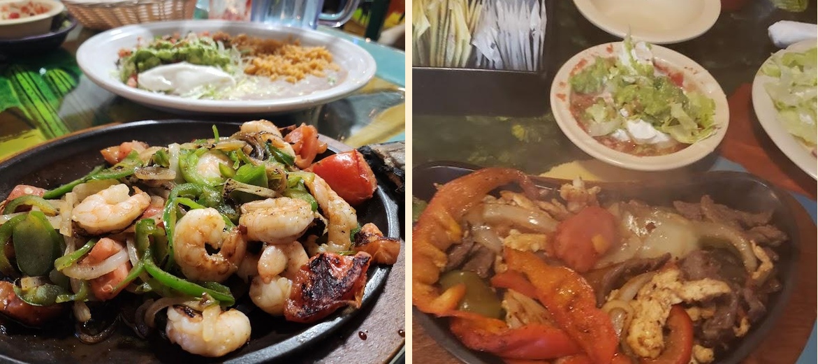 Try the Sizzling Fajitas, particularly the Mixed Fajitas and Jalisco Fajitas. The Chuletas and Carnitas Dinner are also favorites. Don't forget to indulge in the Sopapilla for dessert.